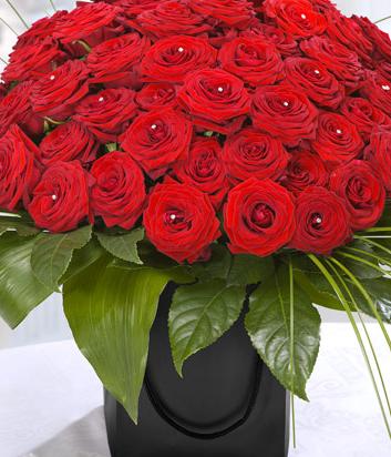 The ultimate gift, a generous aqua pack with 48 romantic luxury red roses, foliages a sprinkling of diamante pins.