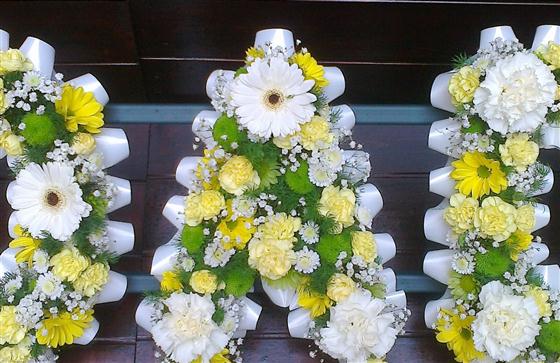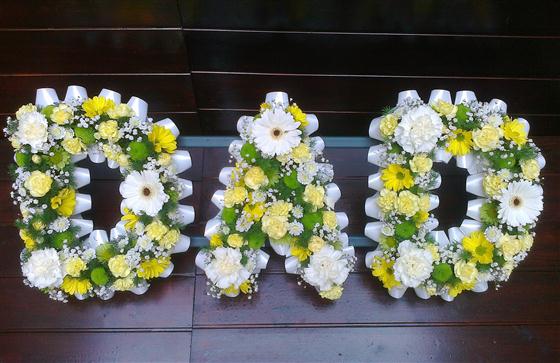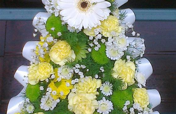 Dad letters with a selection of mixed yellow, green & white flowers in a contemporary design with a added white ribbon edge. Ribbon edge is optional