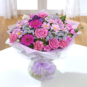 A gorgeous combination of pink, lilac and purple flowers with a selection of foliages.