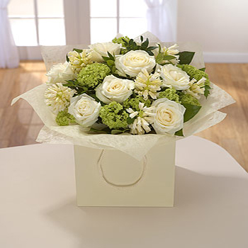 • Flowers delivered in a gift bag aqua packed with flower food added. Designed to be left as delivered and topped up with water daily. Bag colour may vary.