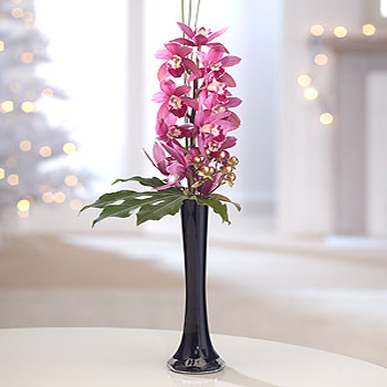 A beautiful mini cymbidum orchid presented in an elegant stem vase. A simply gorgeous flower gift. (colours may vary)