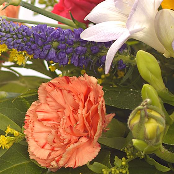Please note that due to the seasonal availability of flowers it may be necessary to vary individual stems from those shown, also due to price fluctuations the product delivered may have slightly less or slightly more flowers. Our skilled florists may substitute flowers for one similar in style, quality and value. Where our designs include a sundry item like a vase or basket it may not always be possible to include the exact item as displayed. If such an occasion arises we will make every effort to replace the item with a suitable alternative.