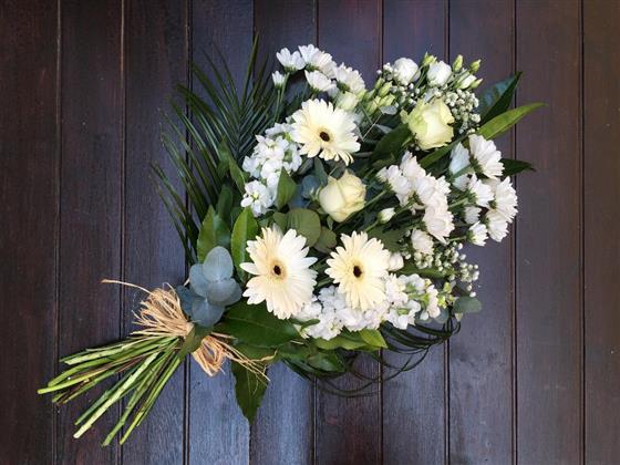 An elegant 2ft all white tied sheaf of mixed flowers.